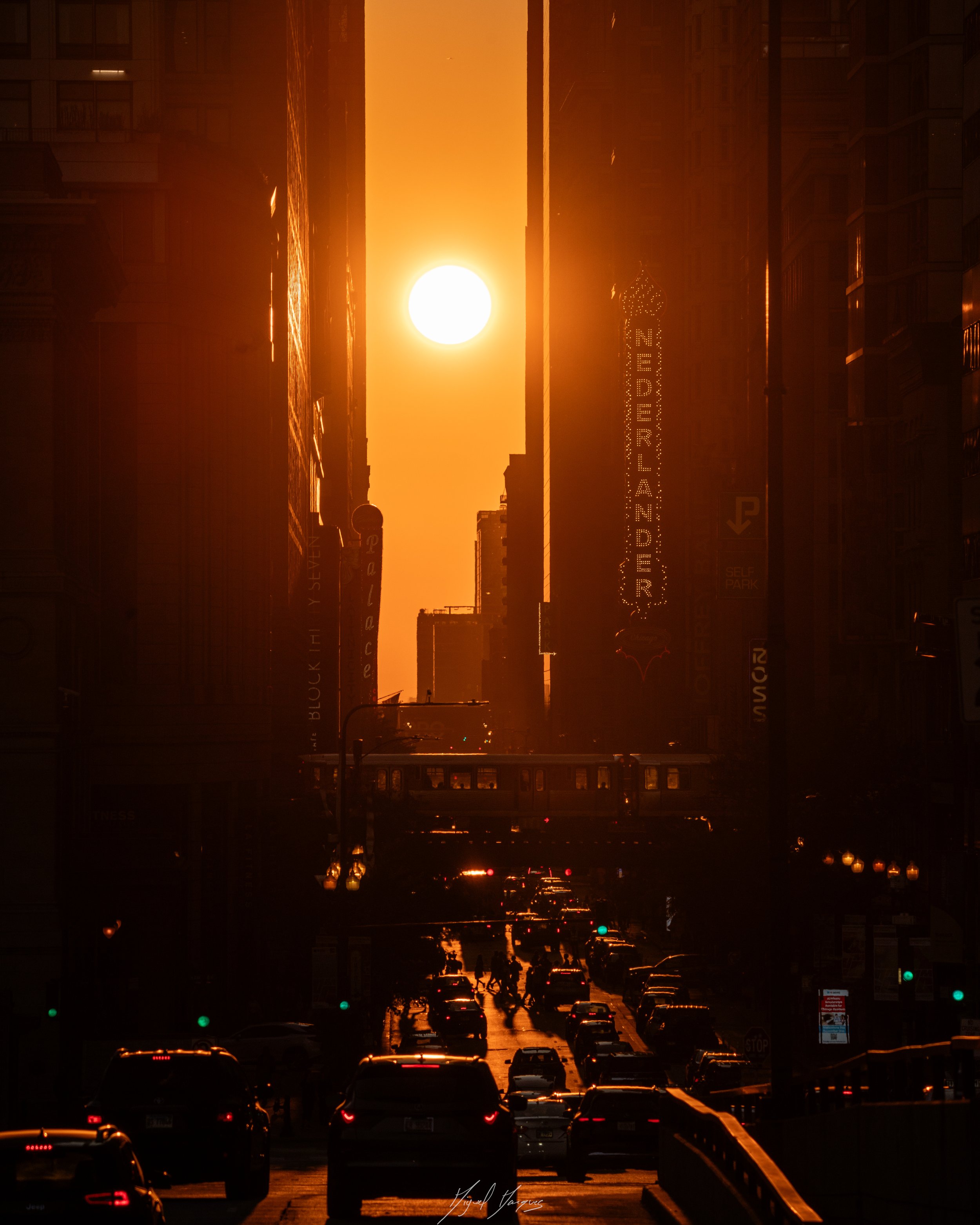 Aterrámos em Chicago, onde ficamos durante três dias. Fomos percorrendo as ruas a pé e começámos a entrar no espírito americano comendo uns donuts e bebendo “baldes” de café. Apenas em dois dias do ano, nos equinócios, o Sol alinha-se com as ruas de Chicago, denominando-se Chicagohenge. E espantem-se: acertámos num desses dias e conseguimos uma das fotos que irá ficar entranhada nas nossas memórias e corações!