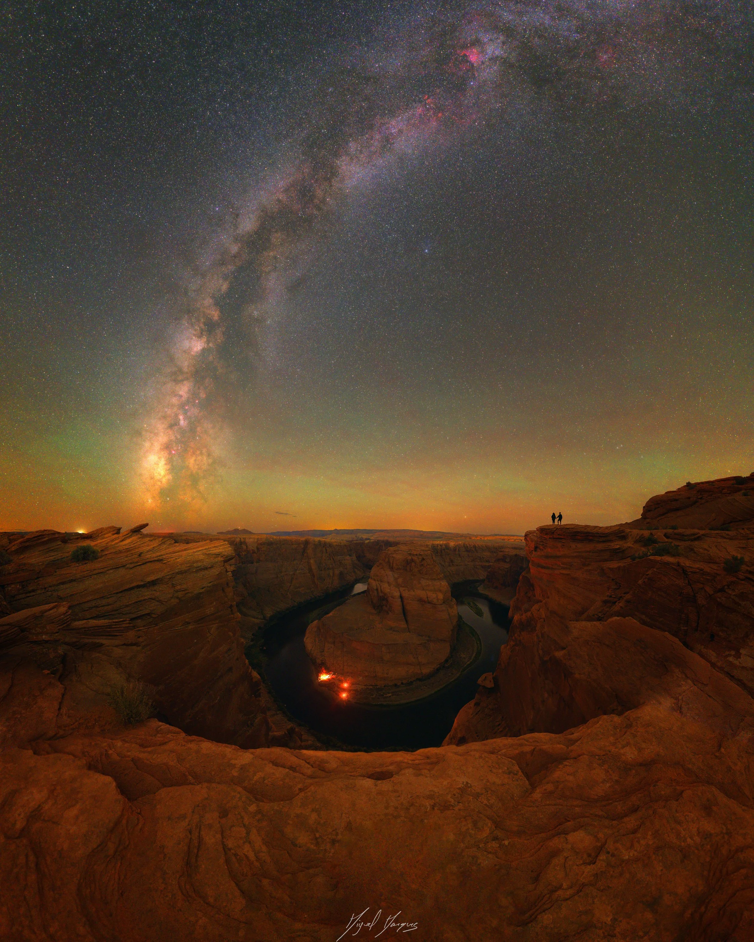 Decorriam as festas da cidade, por isso havia muita música e pessoas, por ali. Em dois dias visitámos um dos pontos mais emblemáticos como o Horseshoe Bend, com o objetivo de o fotografar sob as estrelas. Neste ponto encontramos um casal português que estava a fazer a rota em sentido contrário. Sentimo-nos um bocadinho em casa! Visitámos ainda Cathedral Rock, Lone rock, Balanced Rock, que tal como o nome indica, são muitas pedras, com diversas formas. Imaginem só quão radiante estava o Miguel a fotografá-las. Nesta cidade sentimos mesmo o espírito americano e podemos comprová-lo indo duas vezes à mesma cervejaria e comendo tipicamente, escusado será dizer que foram hambúrgueres, asinhas de frango e nuggets sempre acompanhados com muito molho. A maior surpresa, talvez tenha sido, a Cathedral Water, um trilho natural que culminou num fantástico e refrescante mergulho, no rio Colorado. Page é também conhecido pelo Antelope Canyon, mas nós optámos por este local menos povoado, gratuito e deixamo-nos ir à aventura. Cruzámo-nos com algumas pessoas, tanto na ida como na volta e enfrentámos verdadeiros desafios de escalada e saltos, por entre as pedras.